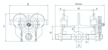單軌行車是一種結構簡單、操作方便、輕小型調運配套起重機械,它可以與手拉葫蘆、環(huán)鏈電動葫蘆等起重產品配套組成起重運輸小車,自如地運行于可以有一定曲率半徑的工字鋼軌道的下翼緣上,用來調運貨物、設備等。