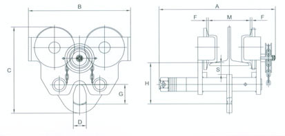 單軌行車是一種結(jié)構(gòu)簡(jiǎn)單、操作方便、輕小型調(diào)運(yùn)配套起重機(jī)械,它可以與手拉葫蘆、環(huán)鏈電動(dòng)葫蘆等起重產(chǎn)品配套組成起重運(yùn)輸小車,自如地運(yùn)行于可以有一定曲率半徑的工字鋼軌道的下翼緣上,用來調(diào)運(yùn)貨物、設(shè)備等。